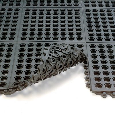 Cheap Wearwell 24/Seven Anti-Fatigue Mat - All-Purpose Grease-Resistant Rubber - Drainage Tile - 3X3' - Black