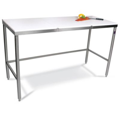Each style has a 3/4" thick High Density Polyethylene top. The top is held in place by welded clips and can be removed for easy cleaning. 1 5/8" dia. legs have adjustable leveling feet. 1,000-lb capacity evenly distributed. Read More..