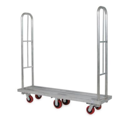 Lightweight yet strong U-boat truck supports over 1300 lbs. The WESCO Aluminum U-Boat Platform Trucks feature easily cleanable sanitary aluminum handles and aluminum-tube deck. Deck consists of (4) 1 1/2" square aluminum tubes spaced 3 1/4" apart. 52"H aluminum handles. Two rigid 6" polyurethane wheels in the middle and four 5" swivel polyurethane casters at the corners allow truck to turn on its own radius. Read More..